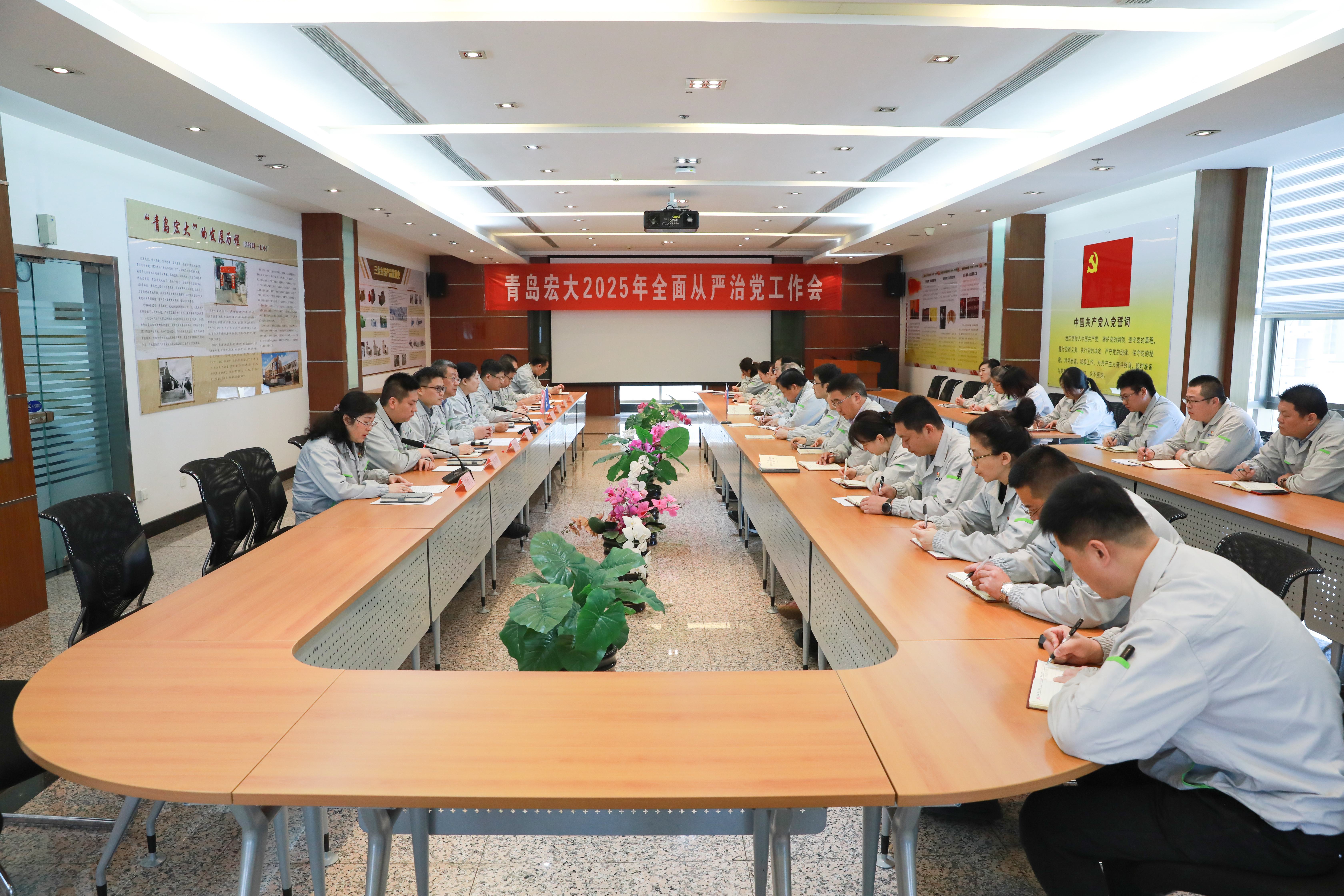 • 3月26日上午,青島宏大紡織機械有限責任公司(以下簡稱“青島宏大”)召開2025年全面從嚴治黨工作會議,傳達二十屆中央紀委四次全會精神、集團公司全面從嚴治黨工作會議精神。黨委書記、執行董事王麗霞,黨委委員、總經理張文新,紀委書記、副總經理呂瑞章等領導班子成員,基層黨支部書記以及黨支部委員參加會議。辦公室(黨委辦公室)主任劉影飛主持會議。...